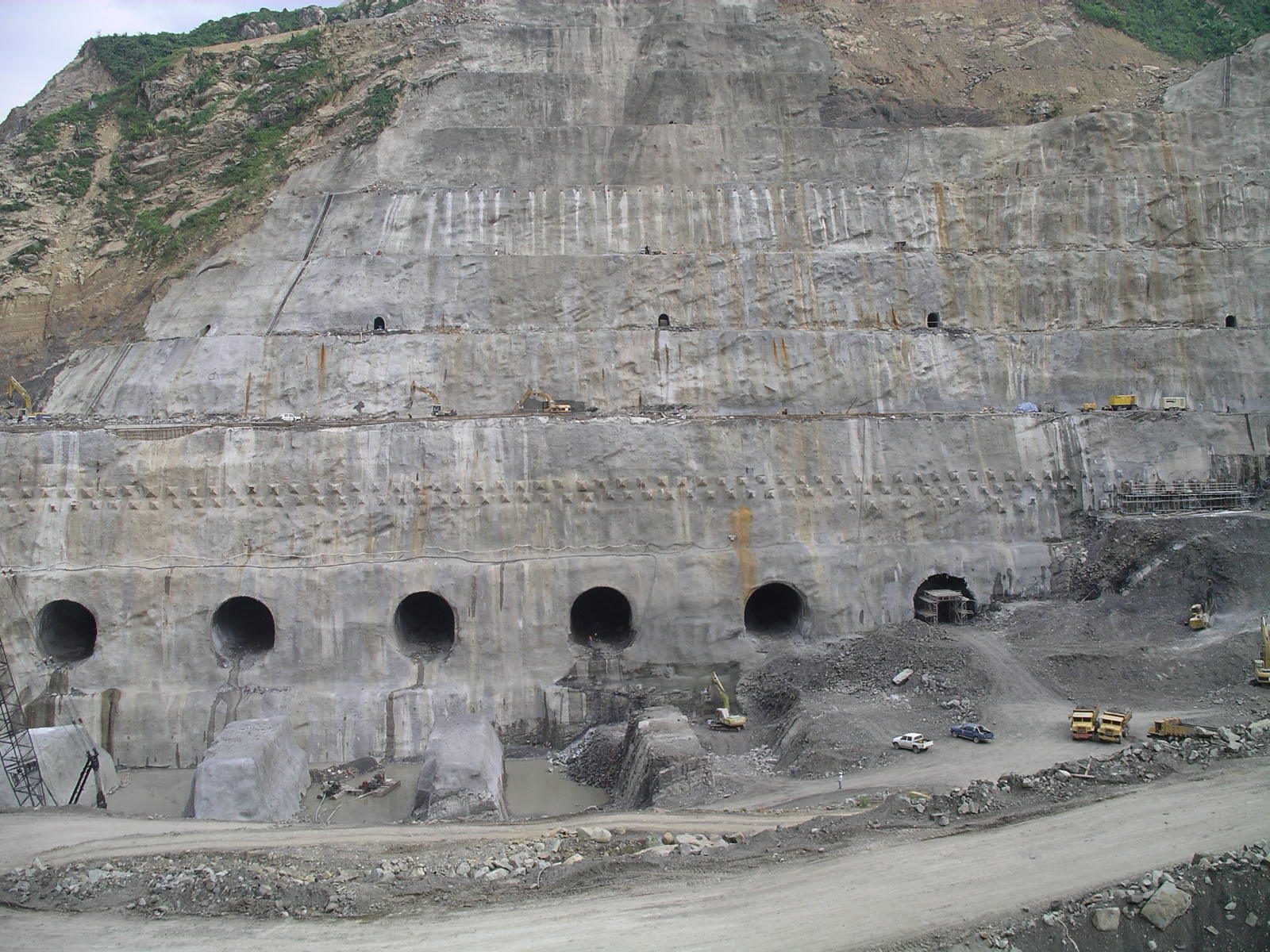 Dam site grouting involves injecting cementitious or chemical grout into the ground to strengthen and seal the foundation, enhancing stability and reducing water permeability for the dam’s overall structural integrity.